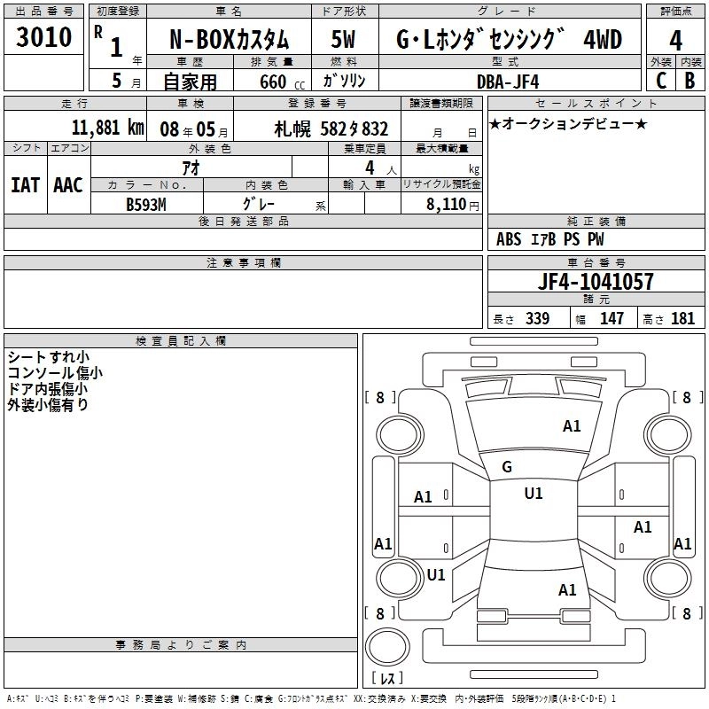 Статус выставлен на аукцион Лот 3010 Аукцион TAA Hokkaido Дата аукциона 26.03.2026