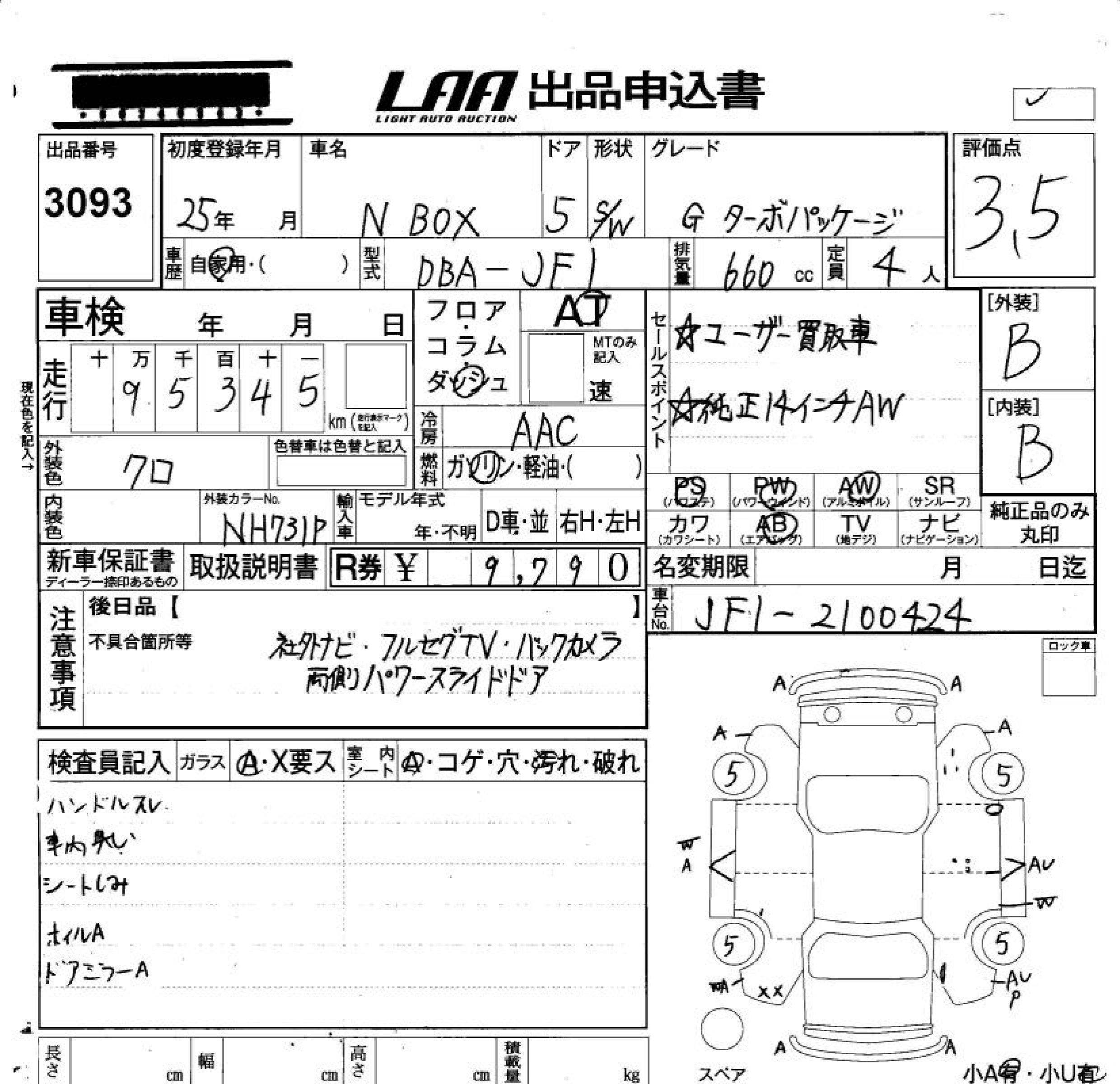 HONDA N BOX 2013 г., лот № 3093
