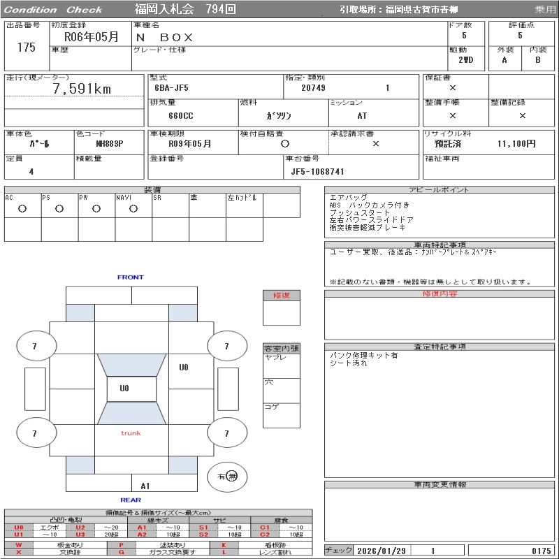 Статус выставлен на аукцион Лот 175 Аукцион ORIX Fukuoka Дата аукциона 03.02.2026