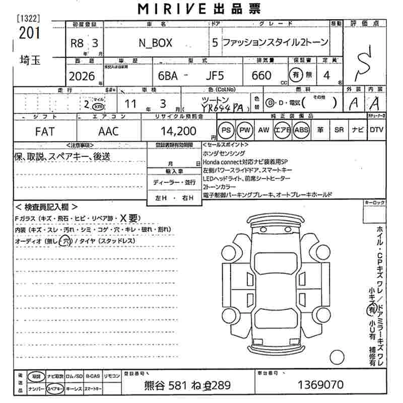 Статус выставлен на аукцион Лот 201 Аукцион MIRIVE Saitama Дата аукциона 18.03.2026