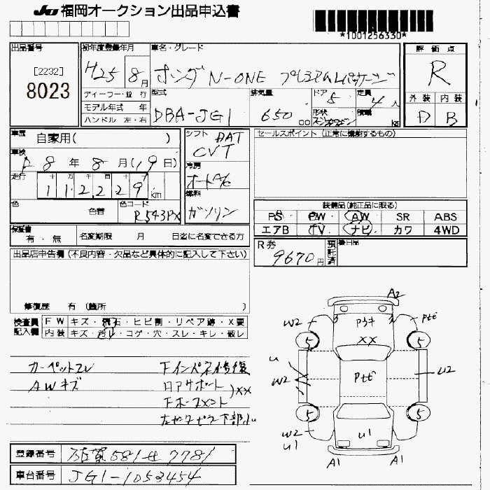 | PREMIUM | DBA-JG1 | S07A | FF | CVT | 658cc | 58ps(43kW)/7300rpm | AИ-92 | 1 360 000 | |