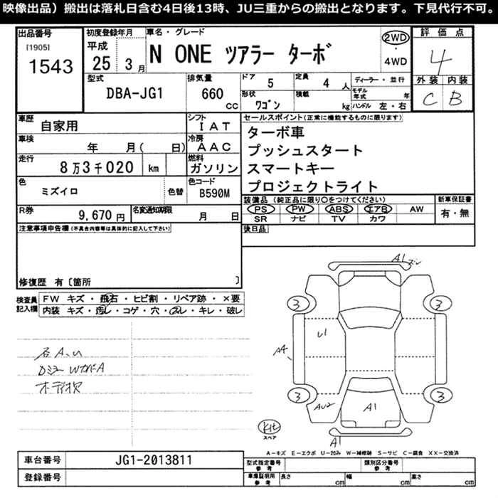 | TOURER | DBA-JG1 | S07A | FF | CVT | 658cc | 64ps(47kW)/6000rpm | AИ-92 | 1 230 000 | |