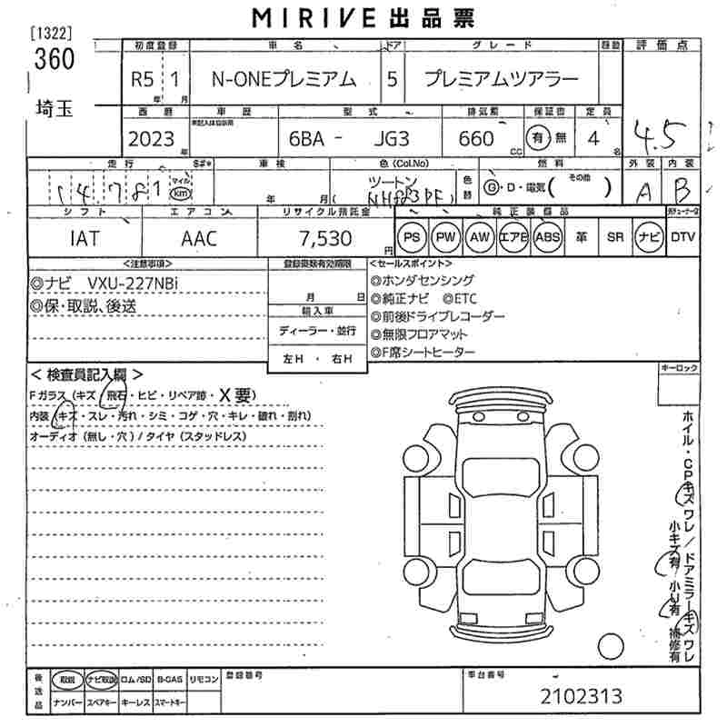 Статус выставлен на аукцион Лот 360 Аукцион MIRIVE Saitama Дата аукциона 18.03.2026