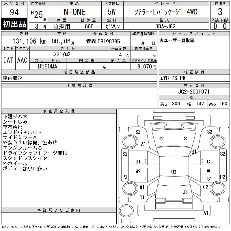 | TOURER | DBA-JG1 | S07A | FF | CVT | 658cc | 64ps(47kW)/6000rpm | AИ-92 | 1 230 000 | |