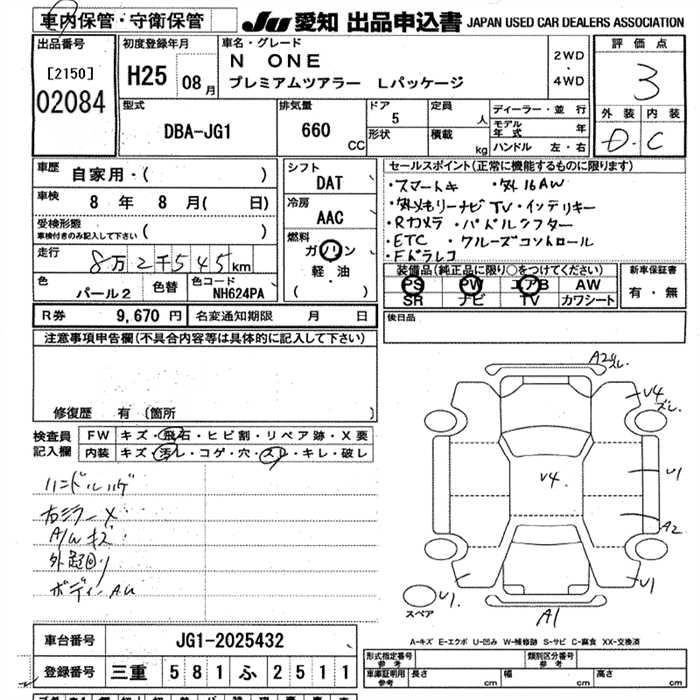 | PREMIUM | DBA-JG1 | S07A | FF | CVT | 658cc | 58ps(43kW)/7300rpm | AИ-92 | 1 360 000 | |