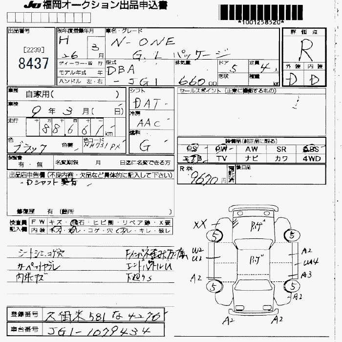 | G SS PACKAGE | DBA-JG1 | S07A | FF | CVT | 658cc | 58ps(43kW)/7300rpm | AИ-92 | 1 330 000 |