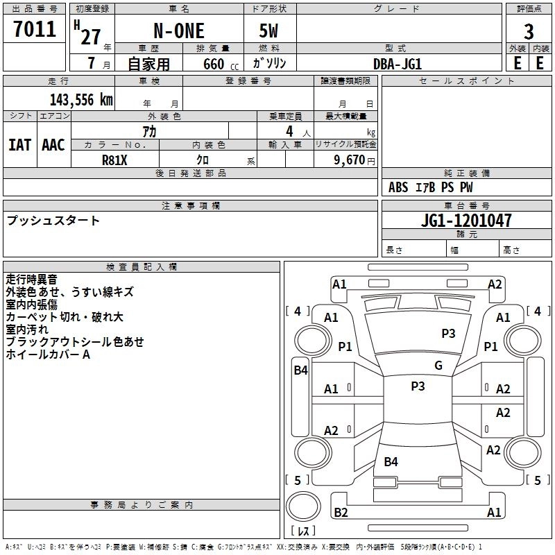 HONDA N-ONE 2015 г., лот № 7011