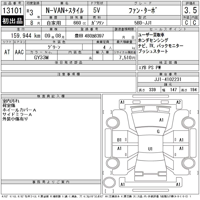 HONDA N-VAN 2021 г., лот № 13101