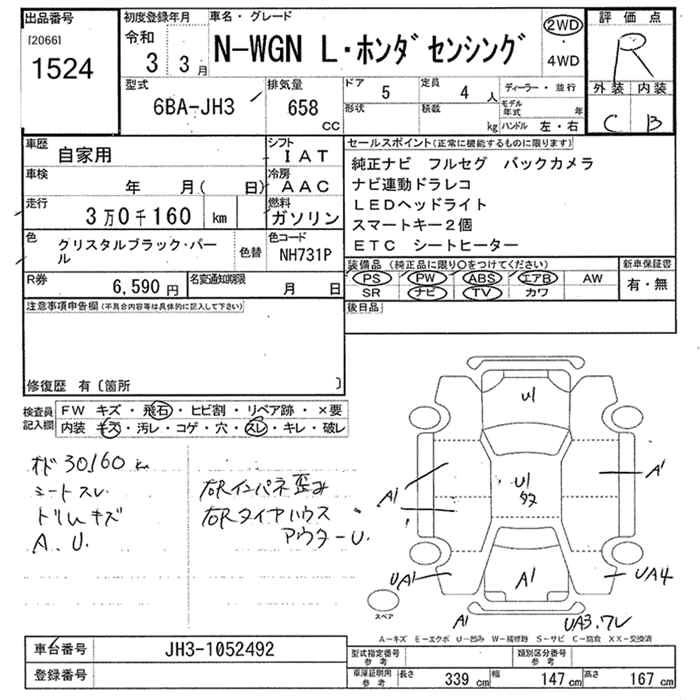 HONDA N-WGN 2021 г., лот № 1524