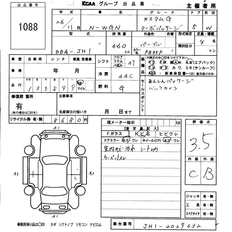 | G COMFORT PACKAGE | DBA-JH1 | S07A | FF | CVT | 658cc | 58ps(43kW)/7300rpm | AИ-92 | 1 320 000 |