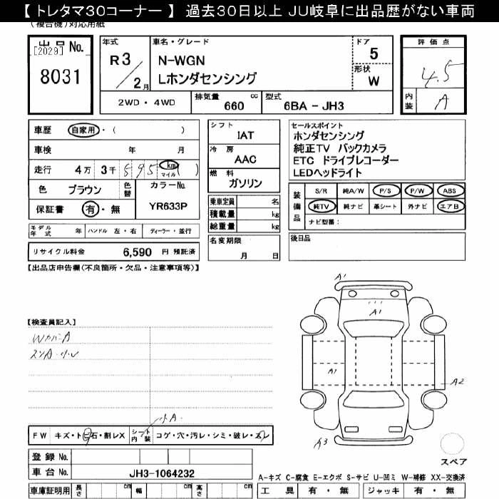 Статус выставлен на аукцион Лот 8031 Аукцион JU Gifu Дата аукциона 31.01.2026