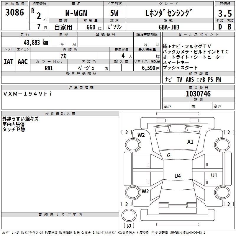 HONDA N-WGN 2020 г., лот № 3086