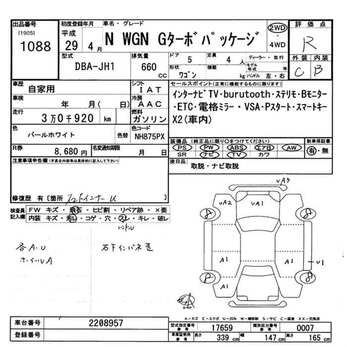 | G SS PACKAGE | DBA-JH1 | S07A | FF | CVT | 658cc | 58ps(43kW)/7300rpm | AИ-92 | 1 261 000 |