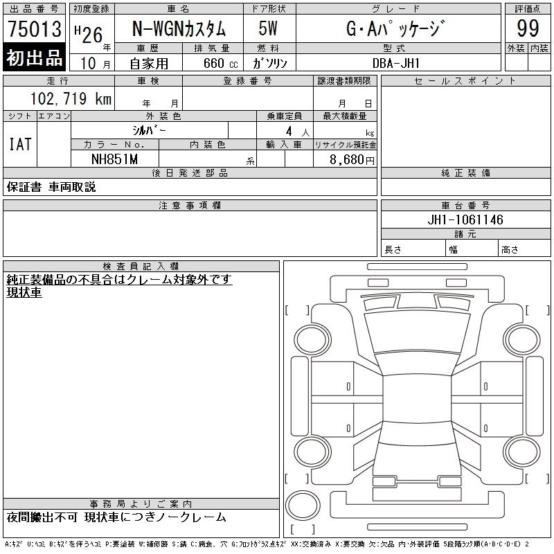 Статус выставлен на аукцион Лот 75013 Аукцион CAA Chubu Дата аукциона 18.03.2026