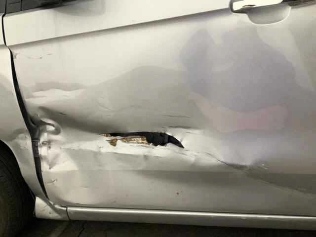 В3Большая вмятина с царапиной (размером с локоть)