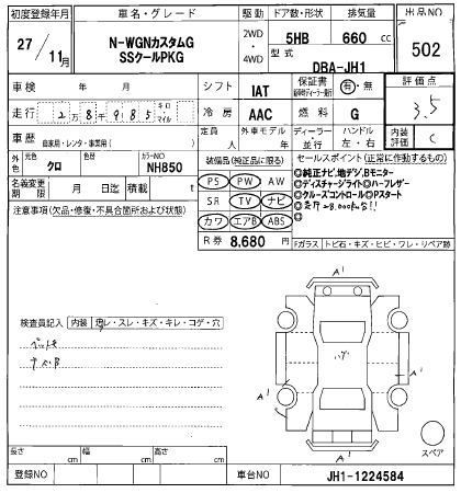 | G L PACKAGE | DBA-JH1 | S07A | FF | CVT | 658cc | 58ps(43kW)/7300rpm | AИ-92 | 1 240 000 | |