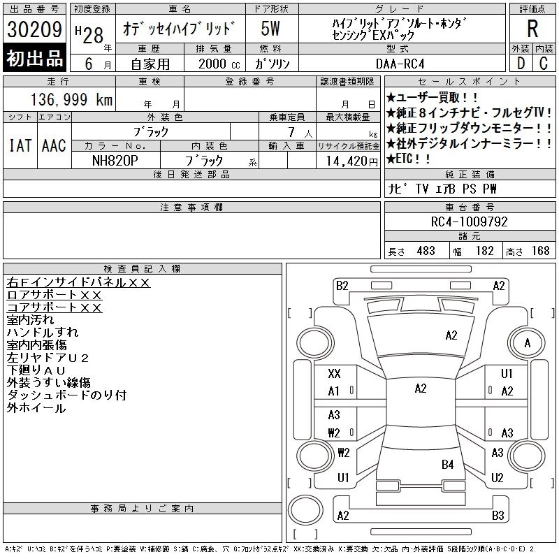 HONDA ODYSSEY HYBRID 2016 г., лот № 30209