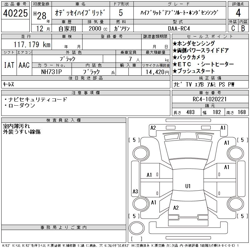 | HYBRID ABSOLUTE HONDA SENSING EX PACKAGE | DAA-RC4 | LFA | FF | CVT | 1993cc | 145ps(107kW)/6200rpm | AИ-92 | 4 000 000 | |