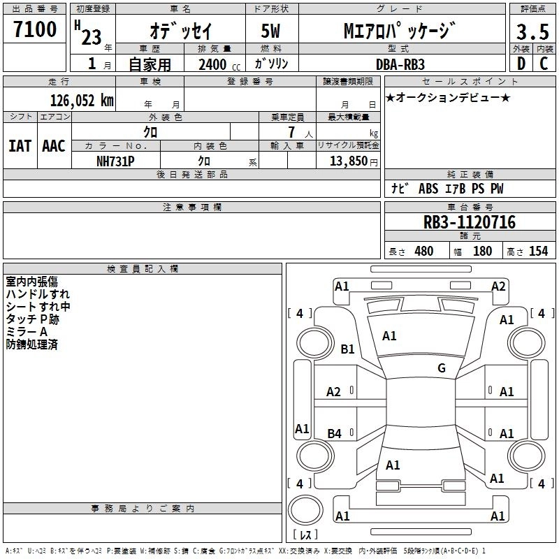 | ABSOLUTE | DBA-RB3 | K24A | FF | 5AT | 2354cc | 206ps(151kW)/7000rpm | AИ-95 | 2 920 000 | |