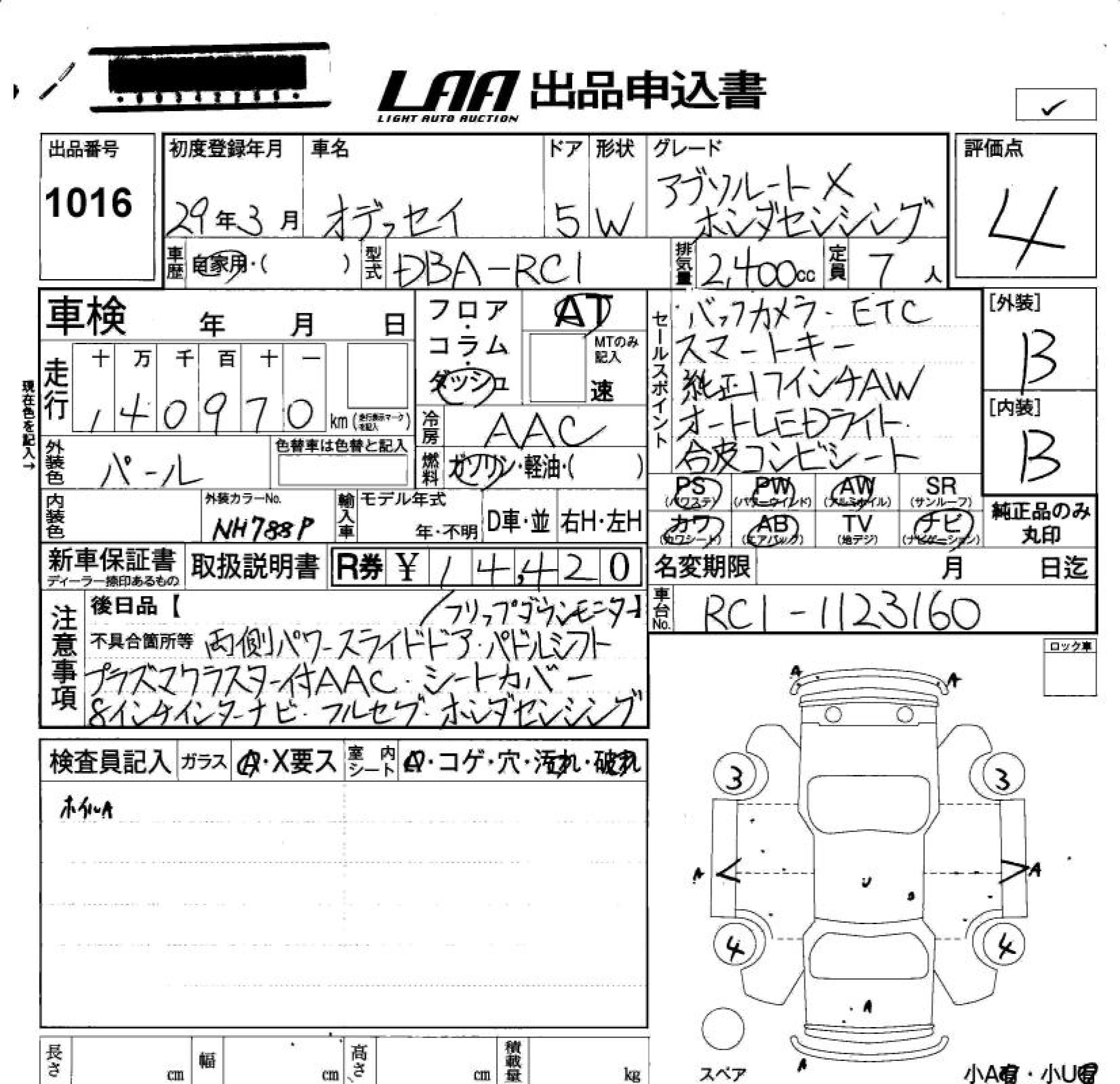 | ABSOLUTE EX HONDA SENSING | DBA-RC1 | K24W | FF | CVT | 2356cc | 190ps(140kW)/6400rpm | AИ-92 | 3 540 000 | |