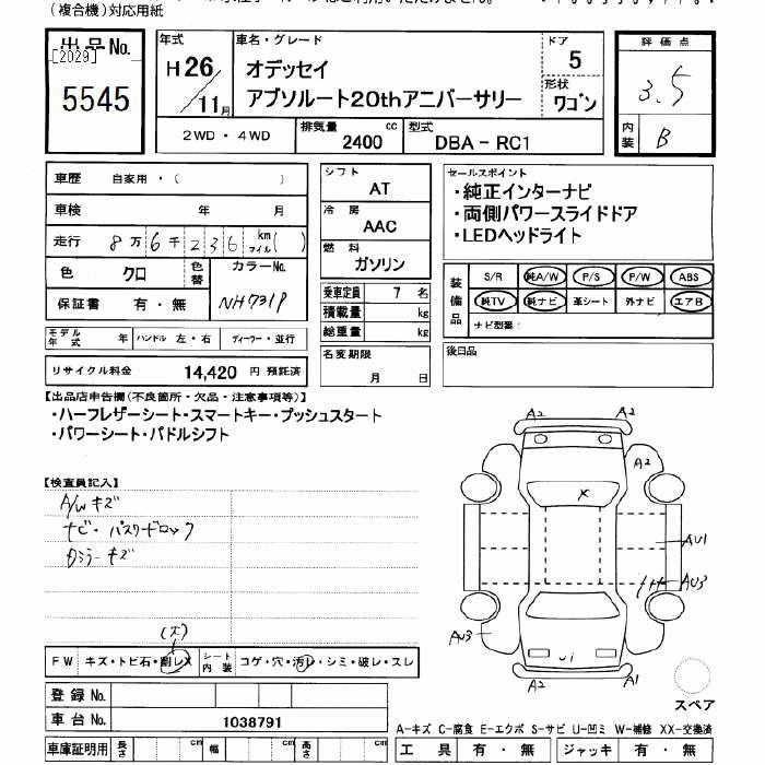 G DBA-RC2 K24W Full-time 4WD CVT 2356cc 175ps(129kW)/6200rpm AИ-92 3 024 000