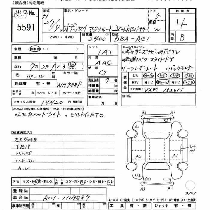 | ABSOLUTE EX ADVANCE | DBA-RC2 | K24W | Full-time 4WD | CVT | 2356cc | 185ps(136kW)/6400rpm | AИ-92 | 3 839 000 | |