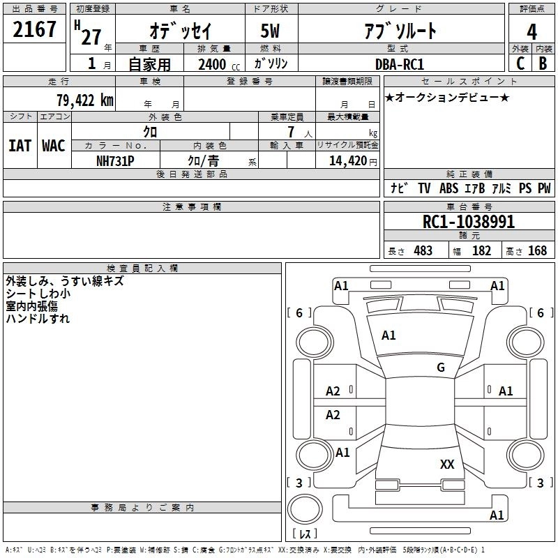 | G | DBA-RC1 | K24W | FF | CVT | 2356cc | 175ps(129kW)/6200rpm | AИ-92 | 2 760 000 |