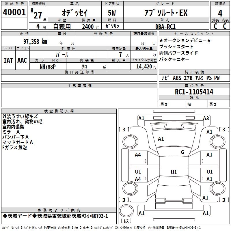 | G | DBA-RC1 | K24W | FF | CVT | 2356cc | 175ps(129kW)/6200rpm | AИ-92 | 2 760 000 |