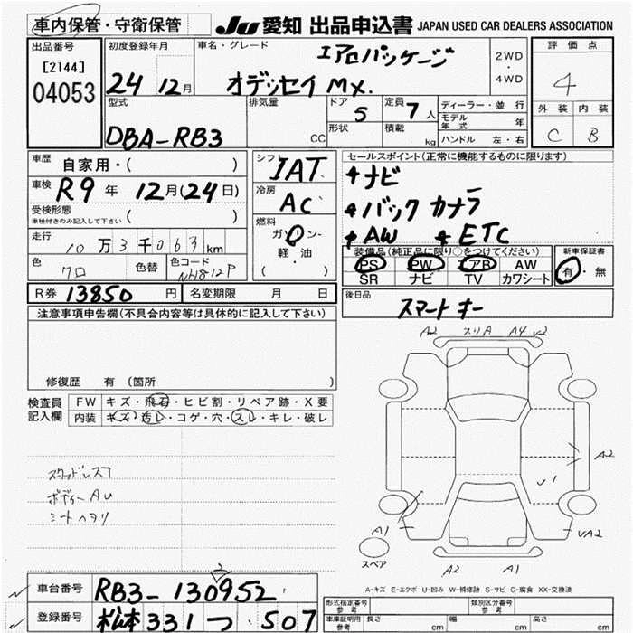 | MX AERO PACKAGE | DBA-RB3 | K24A | FF | CVT | 2354cc | 173ps(127kW)/6000rpm | AИ-92 | 3 060 000 | |