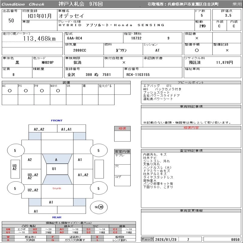 | ABSOLUTE HONDA SENSING | DBA-RC1 | K24W | FF | CVT | 2356cc | 190ps(140kW)/6400rpm | AИ-92 | 3 300 000 | |