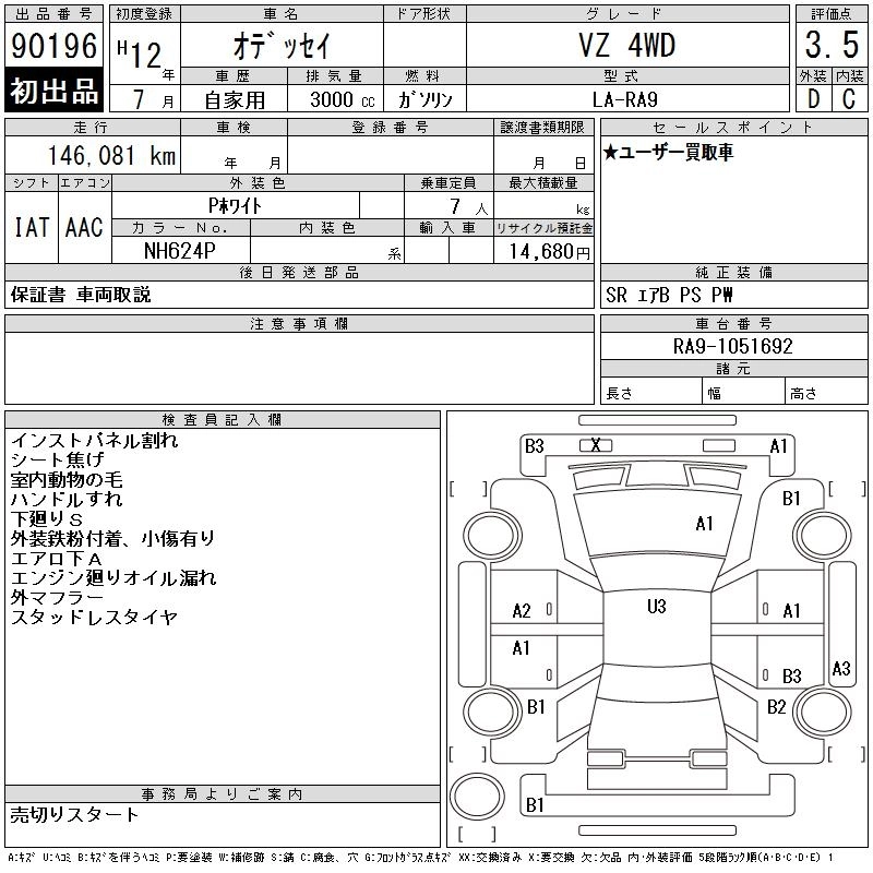 | VG | LA-RA9 | J30A | Full-time 4WD | 5AT | 2997cc | 210ps(154kW)/5800rpm | AИ-92 | 2 925 000 | |