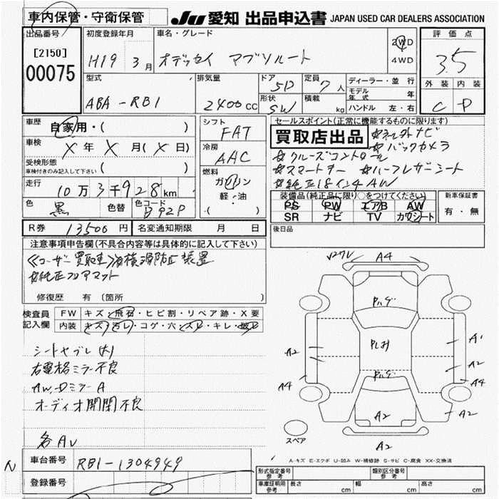 | ABSOLUTE HDD NAVI SPECIAL EDITION | ABA-RB1 | K24A | FF | 5AT | 2354cc | 200ps(147kW)/6800rpm | AИ-95 | 2 919 000 | |