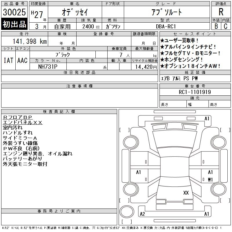HONDA ODYSSEY 2015 г., лот № 30025