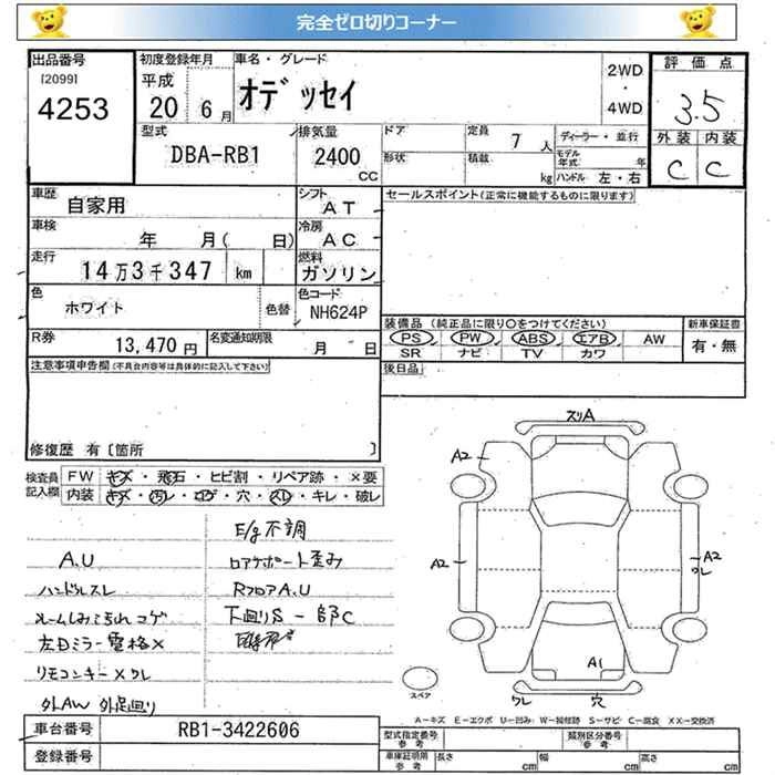 | ABSOLUTE | DBA-RB4 | K24A | Full-time 4WD | 5AT | 2354cc | 204ps(150kW)/7000rpm | AИ-95 | 3 140 000 | |