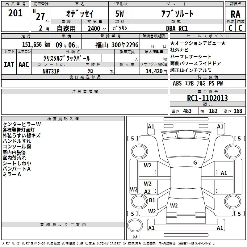 | G | DBA-RC1 | K24W | FF | CVT | 2356cc | 175ps(129kW)/6200rpm | AИ-92 | 2 760 000 |