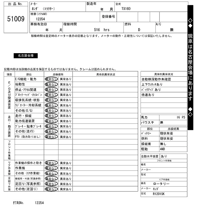 Статус выставлен на аукцион Лот 51009 Аукцион ARAI Kenki Дата аукциона 17.03.2026