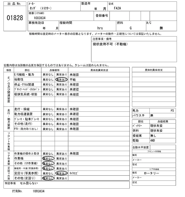 Статус выставлен на аукцион Лот 1828 Аукцион ARAI Kenki Дата аукциона 17.03.2026