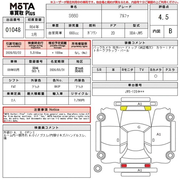 HONDA S660 2022 г., лот № 1048