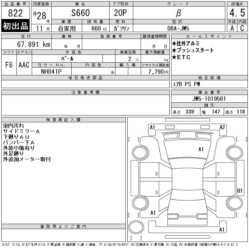 HONDA S660 2016 г., лот № 822