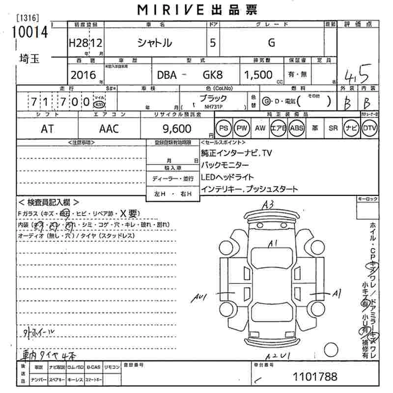 | G | DBA-GK8 | L15B | FF | CVT | 1496cc | 132ps(97kW)/6600rpm | AИ-92 | 1 695 000 |