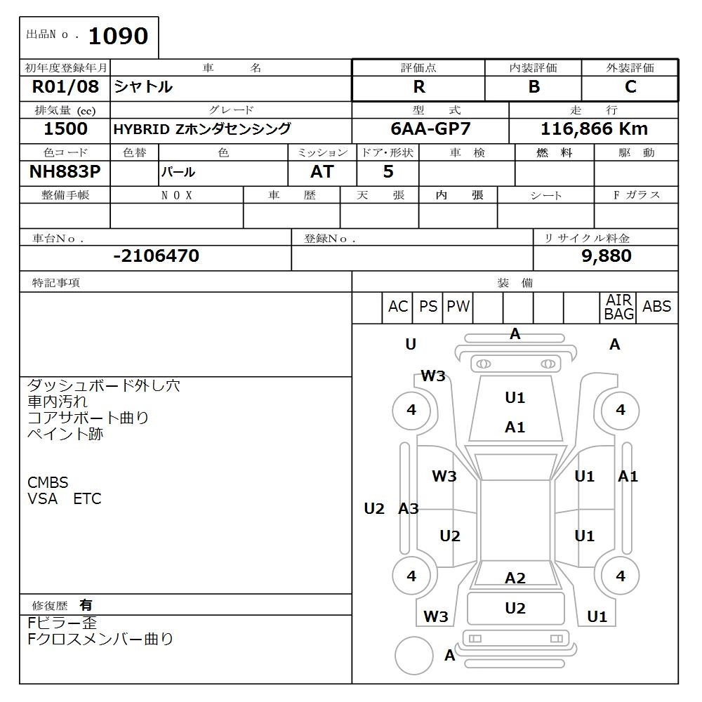 | G HONDA SENSING | 6BA-GK8 | L15B | FF | CVT | 1496cc | 129ps(95kW)/6600rpm | AИ-92 | 1 775 520 |