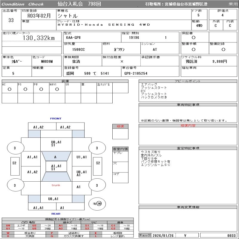 Статус выставлен на аукцион Лот 33 Аукцион ORIX Sendai Дата аукциона 03.02.2026