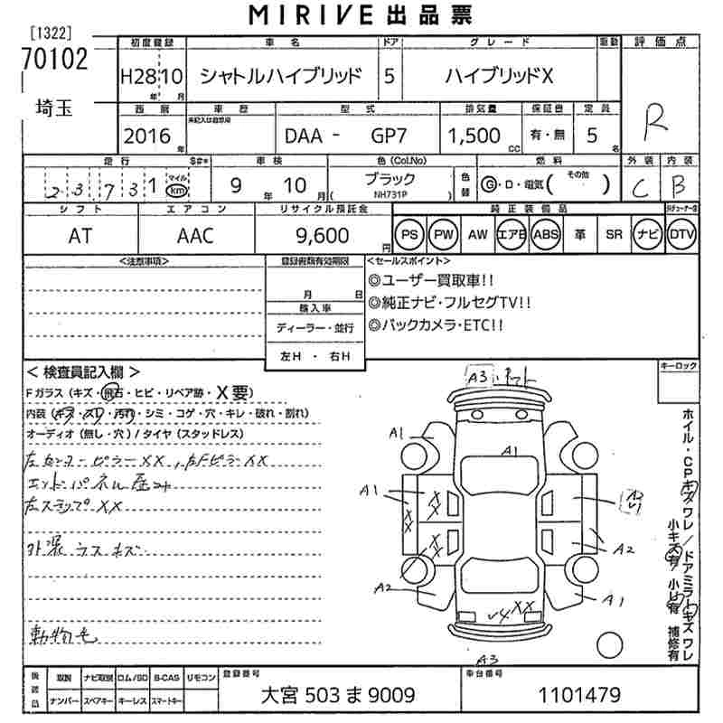 | HYBRID X | DAA-GP7 | LEB | FF | 7AT | 1496cc | 110ps(81kW)/6000rpm | AИ-92 | 2 195 000 | |