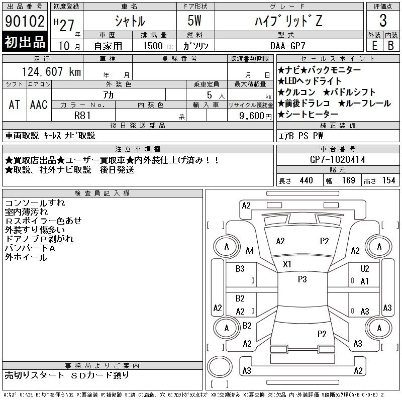 | HYBRID X | DAA-GP7 | LEB | FF | 7AT | 1496cc | 110ps(81kW)/6000rpm | AИ-92 | 2 190 000 | |