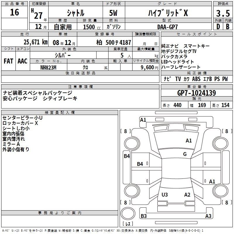| HYBRID X | DAA-GP7 | LEB | FF | 7AT | 1496cc | 110ps(81kW)/6000rpm | AИ-92 | 2 190 000 | |