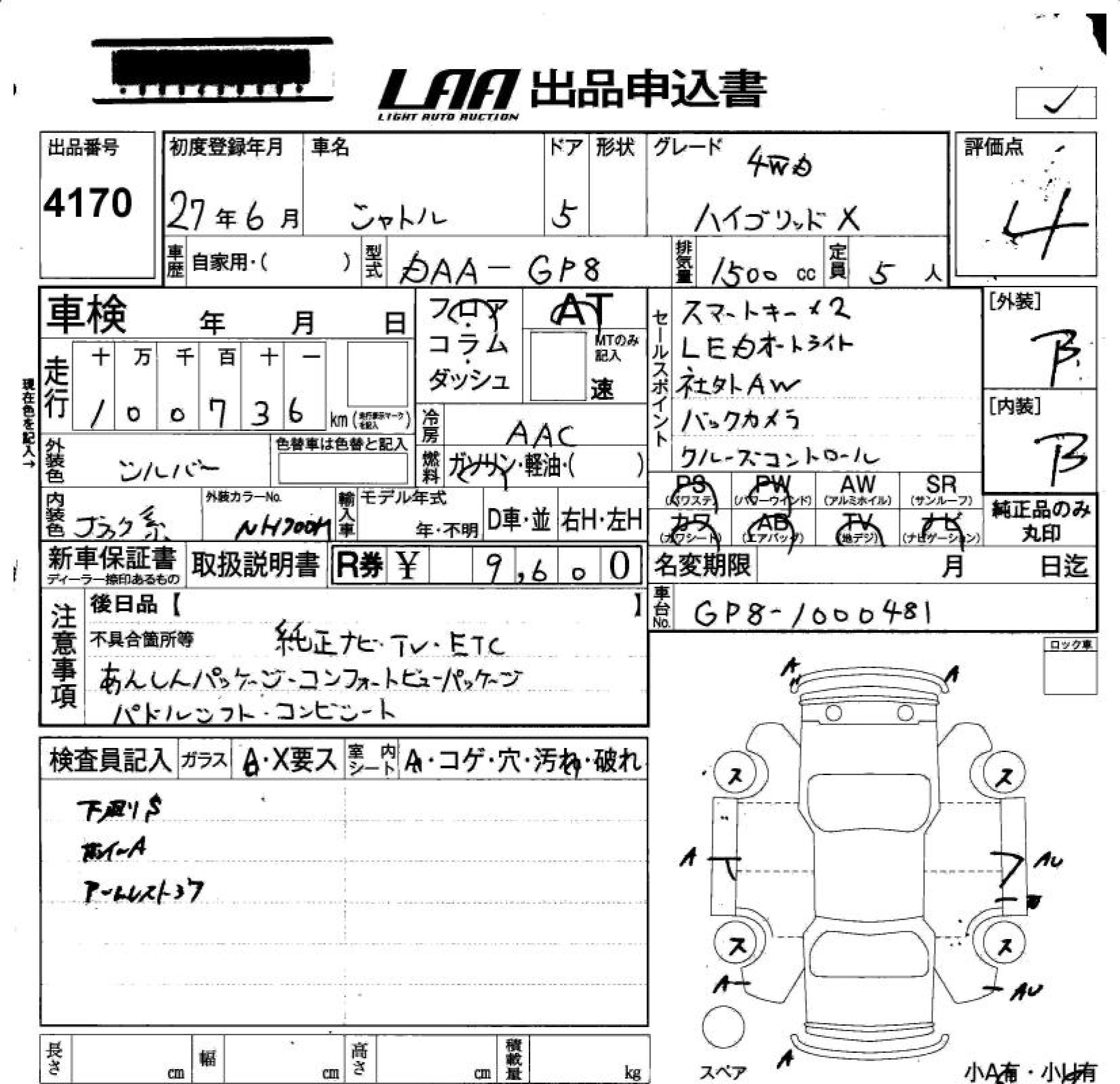 | HYBRID X | DAA-GP7 | LEB | FF | 7AT | 1496cc | 110ps(81kW)/6000rpm | AИ-92 | 2 190 000 | |