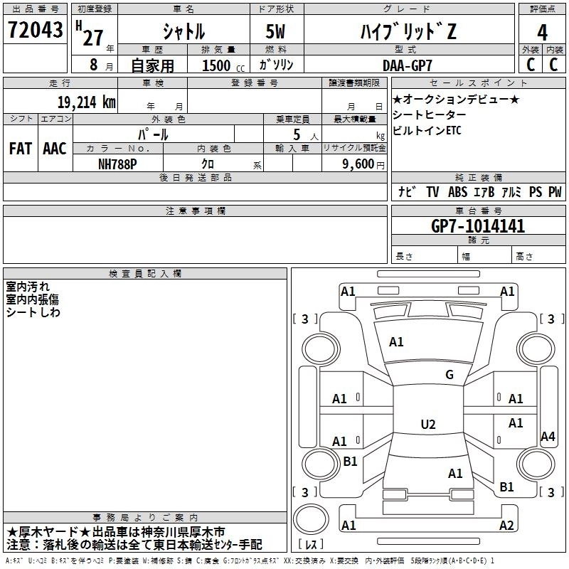 | HYBRID X | DAA-GP7 | LEB | FF | 7AT | 1496cc | 110ps(81kW)/6000rpm | AИ-92 | 2 190 000 | |