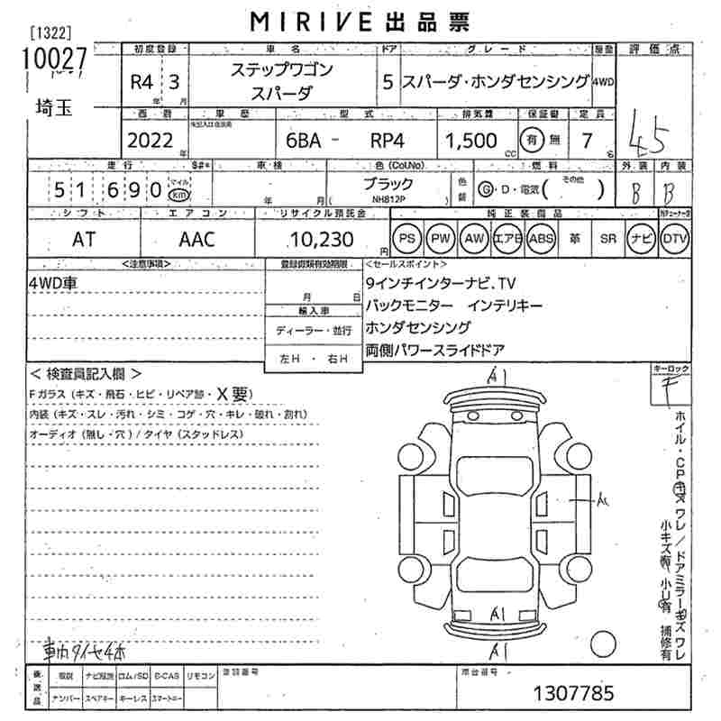 52 000 км КузовRP4 Комплектация SPADA * HONDA SENSING