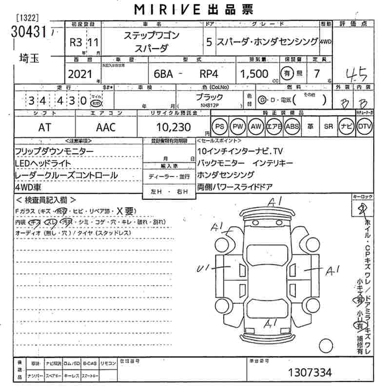 34 000 км КузовRP4 Комплектация SPADA * HONDA SENSING