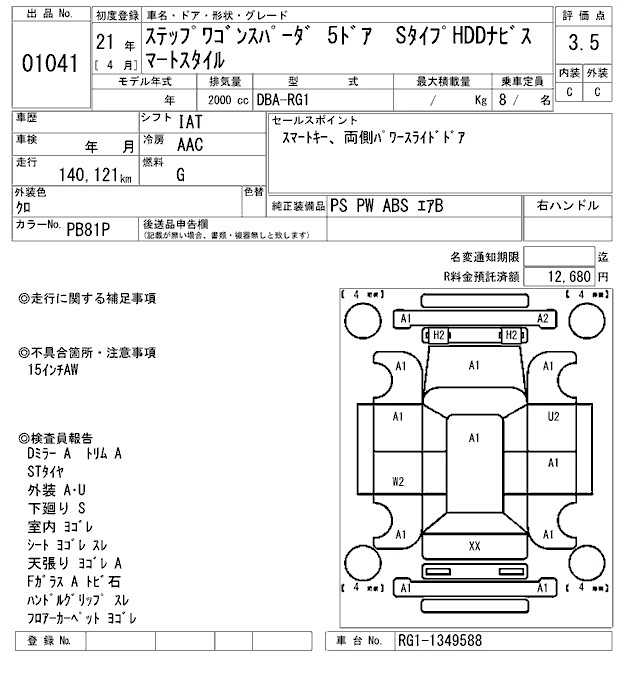 Статус выставлен на аукцион Лот 1041 Аукцион ARAI Sendai Дата аукциона 20.03.2026